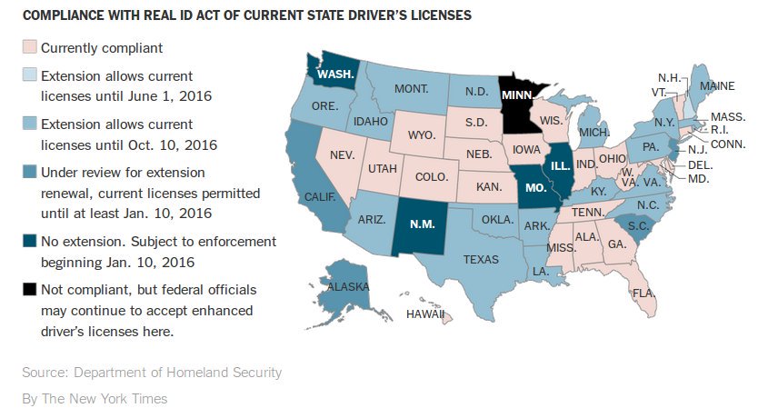 TSA threatens to stop accepting driver's licenses from nine states as of Jan 10 http://boingboing.net/2015/12/29/tsa-threatens-to-stop-acceptin.html … pic.twitter.com/9KCVD7iul4