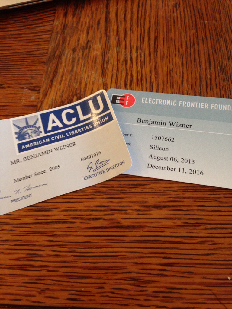 Proud to be a card carrying member @benwizner @JohnLegere @EFF @ACLU (must renew, thanks for the reminder!)pic.twitter.com/opOBRZ6NJP