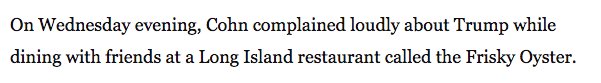 Epitaph on our times could read "Cohn's unsent ltr/dining complaint were relatively/pathetically courageous amid silence as Nazis advanced"
