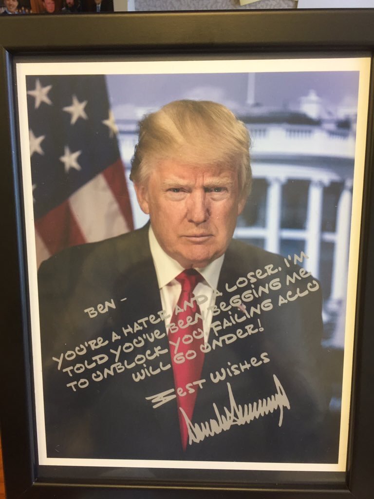 You can go to Trump's website, and they'll sell you an "autographed" photo with ANY inscription you want. I ordered this one. It's braggy, I know, but I think he'd want it that way. pic.twitter.com/R9JaGcuc2N