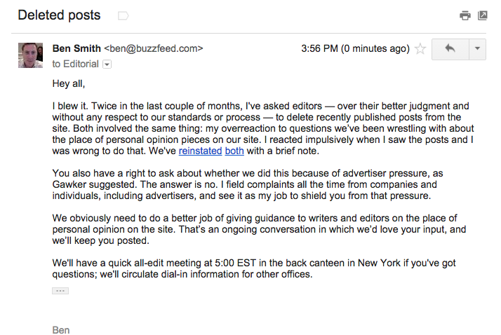 @BuzzFeedBen: Appreciate the criticism. We just reinstated two posts and I sent this note to staffers.pic.twitter.com/DrbQRSRSSs