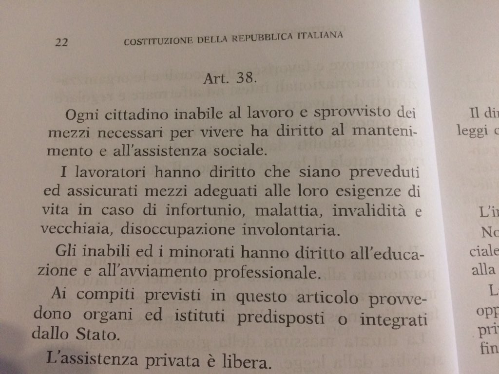 Scopro oggi che il reddito di citt. É previsto dall'art. 38 della costituzione anche in caso di disoccupazione involontaria. Pensa a quanto erano lungimiranti i costituenti !pic.twitter.com/ZQkMD8o4Xn