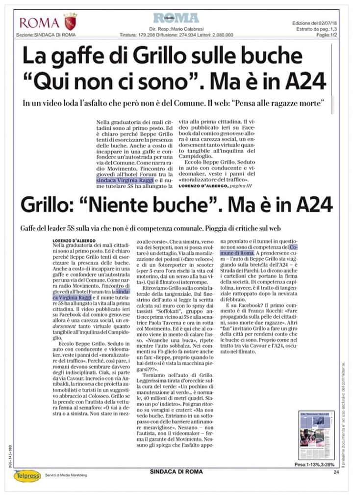 Mi scusi Se lei non vede nessuna buca a Roma, le consiglio un buon oculista