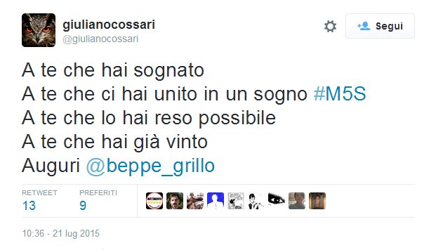 #TantiAuguriBeppeThanks. Twitter will use this to make your timeline better. UndoUndo