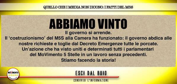 @beppe_grillo il governo ha posto la fiducia!!!Quel decreto non è stato bloccato!!Leggi gli aggiornamenti dei nostri eletti!!!VERGOGNOSO!!