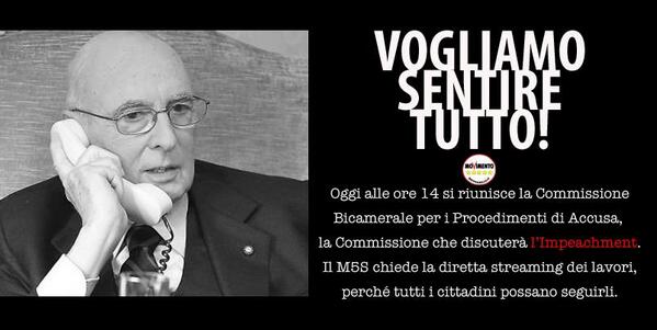 @beppe_grillo: Oggi alle 14 primo passo avanti per l'impeachment del#M5S a Napolitano. Vogliamo la massima trasparenza! RT!#DiteloAtuttiThanks. Twitter will use this to make your timeline better. UndoUndo