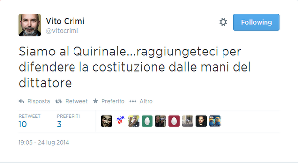 @sommascabis@tossina_libera@beppe_grillo@vitocrimi Raggiungeteci al Quirinale? Questo genio è fortunato di essere immune per sue opinioni