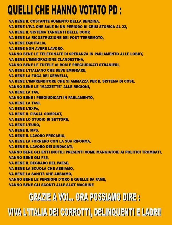 @beppe_grillo il#Pd non pensa a salvare gli italiani dalla miseria, pensa a salvare i suoi indagati, condannati, collusi e quant'altro...Thanks. Twitter will use this to make your timeline better. UndoUndo