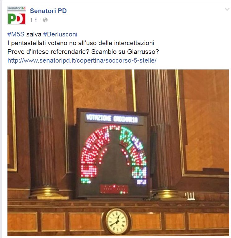 negato uso delle intercettazioni contro Berlusconi, il PD salva ancora l'uomo senza il quale nulla gli sarebbe stato possibile