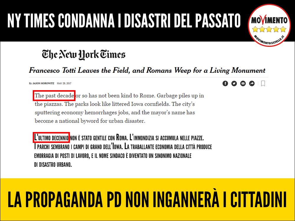 The New York Times dtd May 29,2017 La dura critica si riferisce al presente:i tempi dei verbi li conoscete sì o no?Roma ingannata da m5/cas