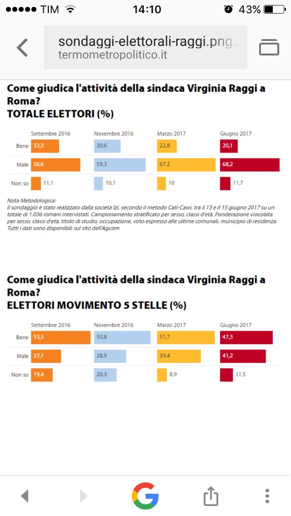 A parte l'offesa gratuita per chi non la pensa come te, considera che il campione è nazionale. C'è da chiedere ai romani che vivono la città