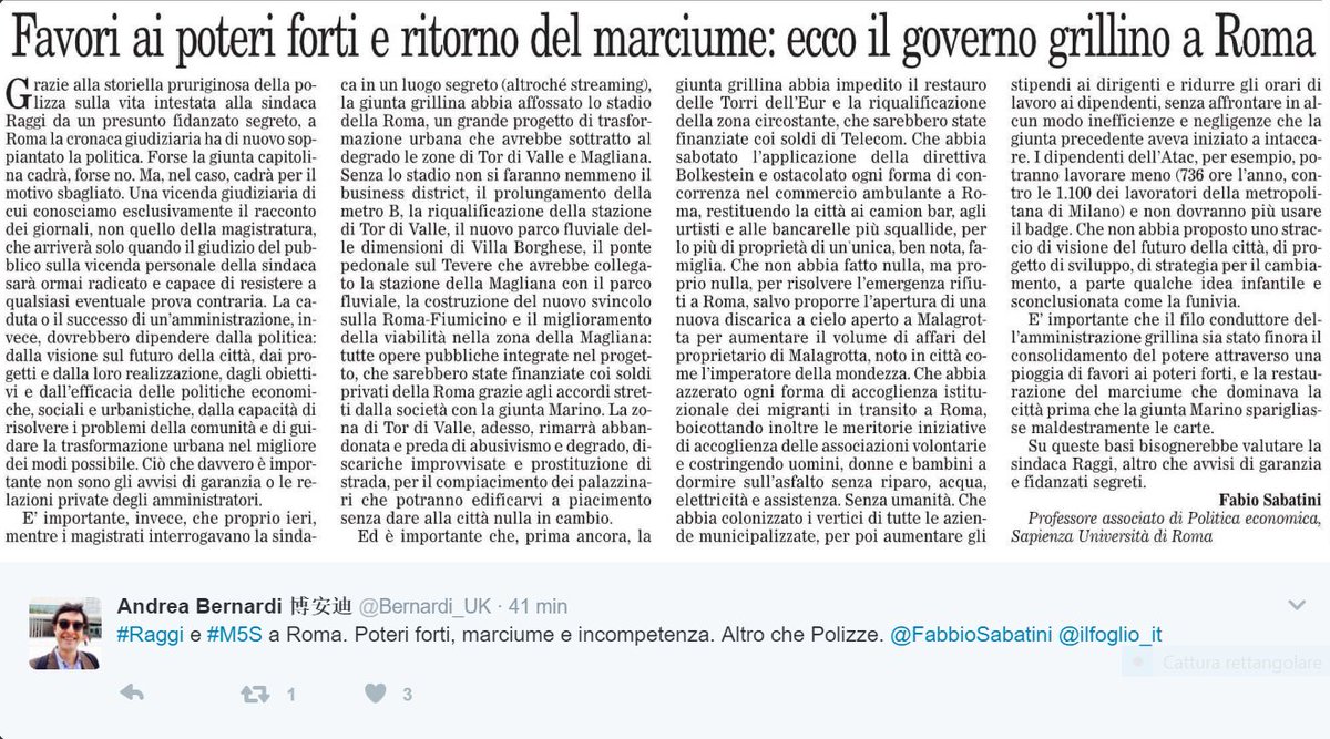 Per me l'unica cosa che continua non solo a Roma ma in tutta Italia e la vostra colossale presa per il culo a spese di tutti quei sognatori che credono che voi salverete l'Italia e il mondo d'altronde sei diabolico nel approfittarti di tutti questi