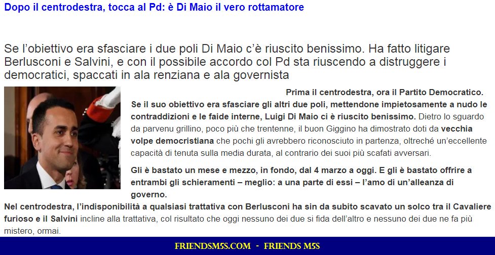 In questo articolo si riassume come Luigi sia riuscito a spaccare tutti i partiti mostrandoci i loro veri volti. È un grande.pic.twitter.com/gHTaZ7IMUB