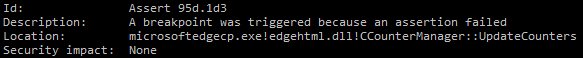 #DailyBug #MicrosoftEdge Assert <svg><style><path marker-start=url(#x)><path></svg><x hidden style=counter-reset:x>pic.twitter.com/hqPihyJQwz