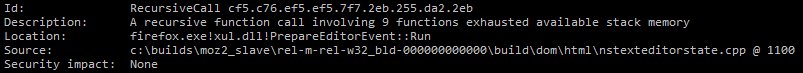 #DailyBug bonus #Firefox recursive function call Repro too long to tweet, see it at https://bugzilla.mozilla.org/show_bug.cgi?id=1264921 …