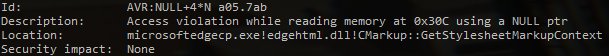 NULL pointer btw. https://developer.microsoft.com/en-us/microsoft-edge/platform/issues/7883724/ …