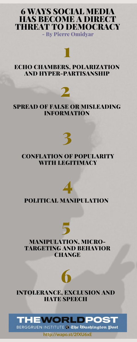 #DigitalDemocracy project advisor Pierre Omidyar outlines 6 ways social media has become a threat to democracy. https://www.washingtonpost.com/news/theworldpost/wp/2017/10/09/pierre-omidyar-6-ways-social-media-has-become-a-direct-threat-to-democracy/?utm_term=.910af507adc6 …pic.twitter.com/PfHUD4ey86