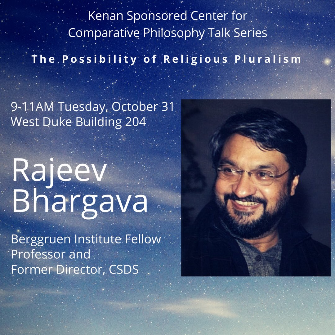Berggruen Institute @nyuniversity Fellow, Professor Rajeev Bhargava will give a talk on "The Possibility of Religious Pluralism" at @DukeUpic.twitter.com/dHirYzpQ6O