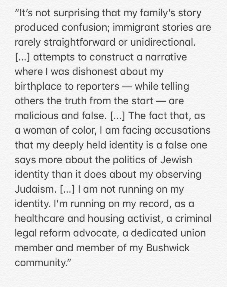 .@SalazarSenate18: “I am not running on my identity. I’m running on my record, as a healthcare and housing activist, a criminal legal reform advocate, a dedicated union member and member of my Bushwick community.” https://salazarforsenate.com/2018/08/statement …pic.twitter.com/DnJ2nfdeXt