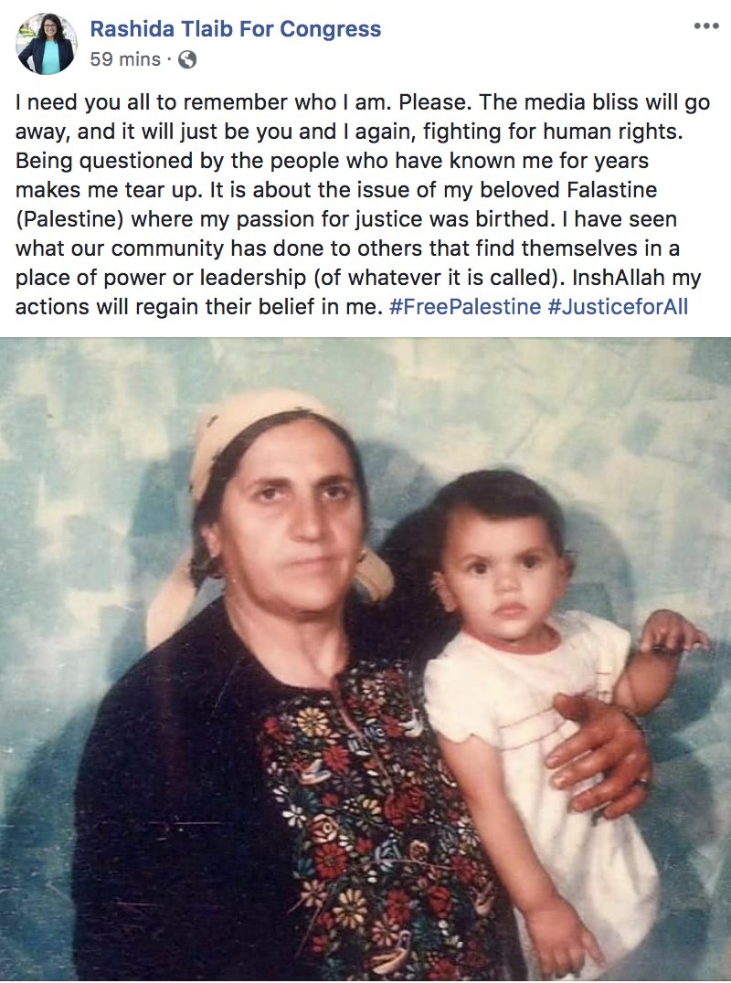 .@RashidaTlaib responding (indirectly) to the concerns over her endorsement from @jstreetdotorg, which I raised in my article yesterday. There’s much emotional appeal in her response, but no detailed answers. I’ve written to her with specific questions. I hope she replies.pic.twitter.com/Zj5sHfldqK