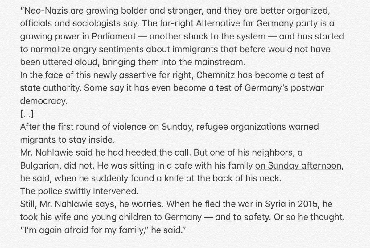 “What seemed new — and alarming — was that such a broad range of far-right groups had come together alongside overt neo-Nazis. ... it shook many Germans’ faith that certain lines would never be crossed.” https://www.buzzfeednews.com/article/lesterfeder/germany-chemnitz-far-right-neo-nazis …pic.twitter.com/JGcQB8znQs
