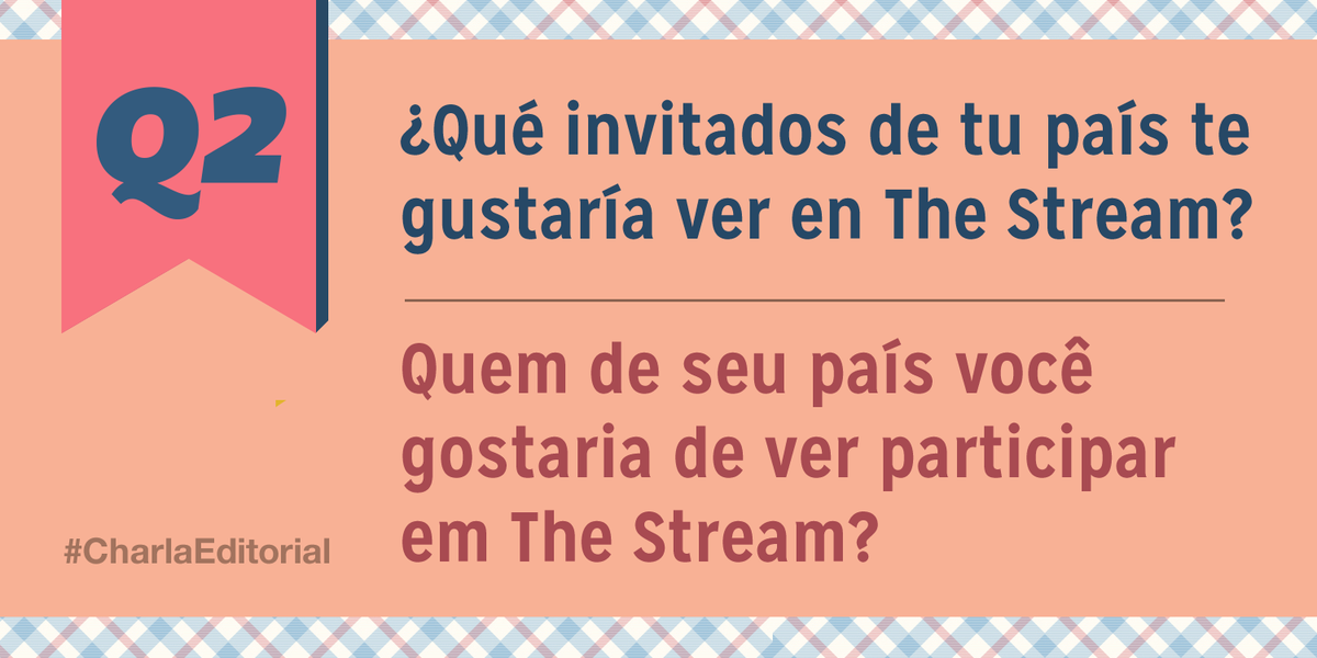 Q2: Which Latin American guests would you like to see on The Stream? Tweet us your answers using A2! #CharlaEditorialpic.twitter.com/n8KFABLvRt