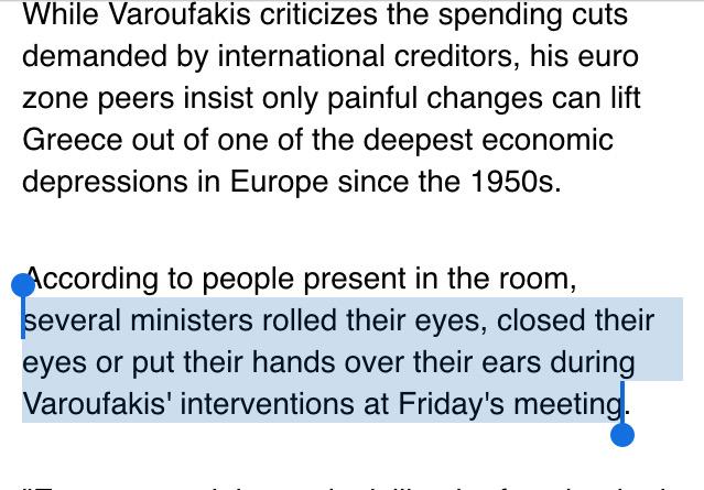The fact that @yanisvaroufakis gets "the cold shoulder" from this type of people speaks rather well of himhttps://twitter.com/bernajurema/status/591967458443042816 …