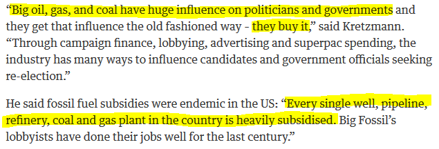 the subsidises "granted by politicians who received significant campaign contributions from the fossil fuel industry" http://www.theguardian.com/environment/2015/may/12/us-taxpayers-subsidising-worlds-biggest-fossil-fuel-companies …