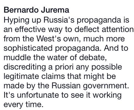 Hyping up Russia's propaganda an effective way to deflect from West's own & discredit any legitimate Russian claims.pic.twitter.com/Vhgis9cogD