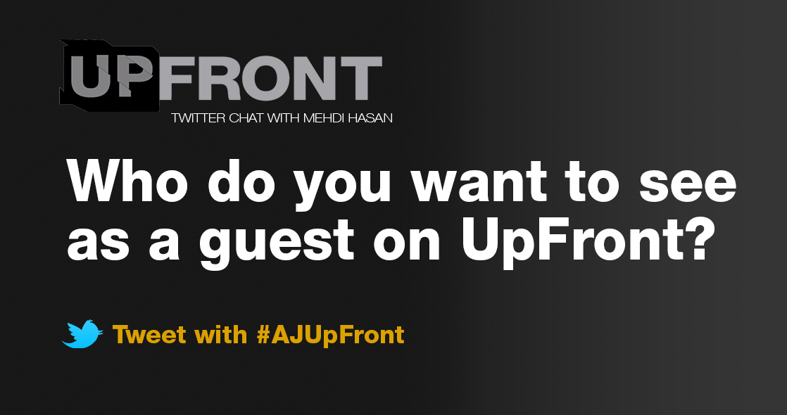 Who do you want to see as a guest on UpFront? Let @mehdirhasan know with #AJUpFront.pic.twitter.com/qkgStwmTNw