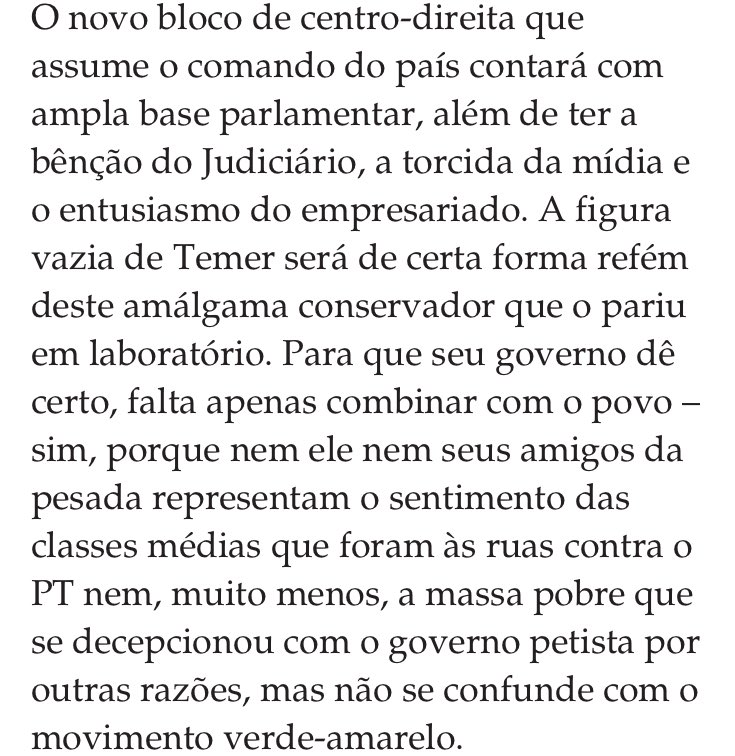 Fernando de Barros e Silva na @revistapiaui indica o que esperar do Governo Temer