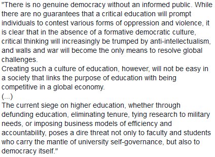 .@HenryGiroux: "There is no genuine democracy without an informed public"