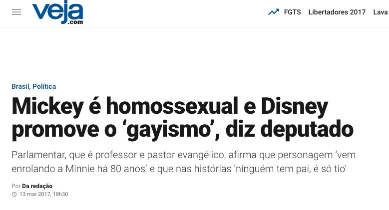 Pois bem, @veja kibou um arquivo de áudio do @BuzzFeedNewsBR em que reproduzia o deputado acusando o Mickey de propagar o "gayismo" [sic] pic.twitter.com/t0Ib0hPHgG