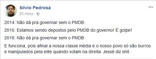 "A esquerda vive hoje em agudíssima crise de cornitude do real. E vai demorar um bom tempo para superá-la." https://www.facebook.com/idelber.avelar/posts/10155471123552713 …