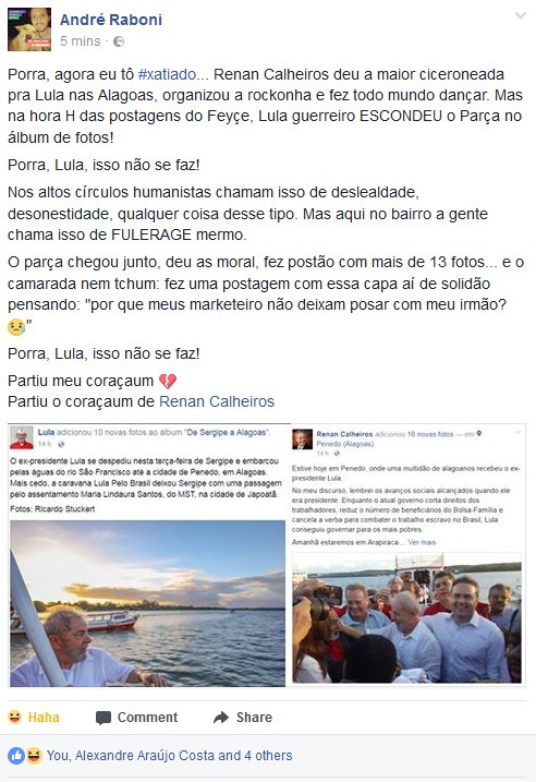 @andreraboni dando a real aqui:#LulaPeloBrasil escondendo o bróder@renancalheiros é uma grande#fulerage :Dpic.twitter.com/w0Irv3WMUM
