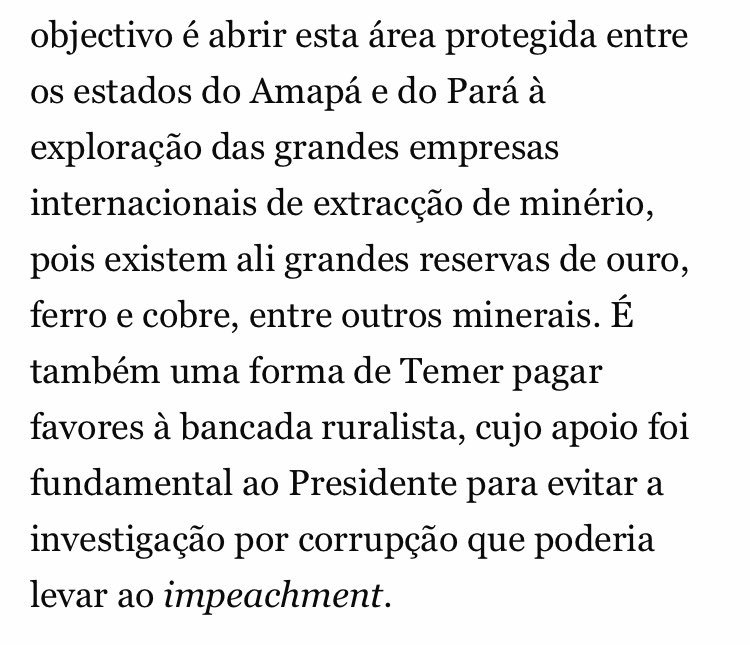 Para manter-se no poder e proteger-se da Justiça, @MichelTemer põe em risco fauna, flora e povos da #Amazônia https://www.publico.pt/2017/08/24/mundo/noticia/amazonia-temer-deixa-ir-as-arvores-em-troca-do-ouro-1783321/amp …pic.twitter.com/adTSBCK183