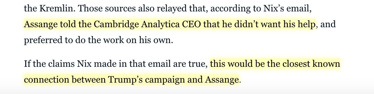Russiagate: "The closest known connection between Trump’s campaign & Assange" is @JulianAssange turning them down.🤔 http://thebea.st/2y5teY2 pic.twitter.com/J0mK6zyVxg