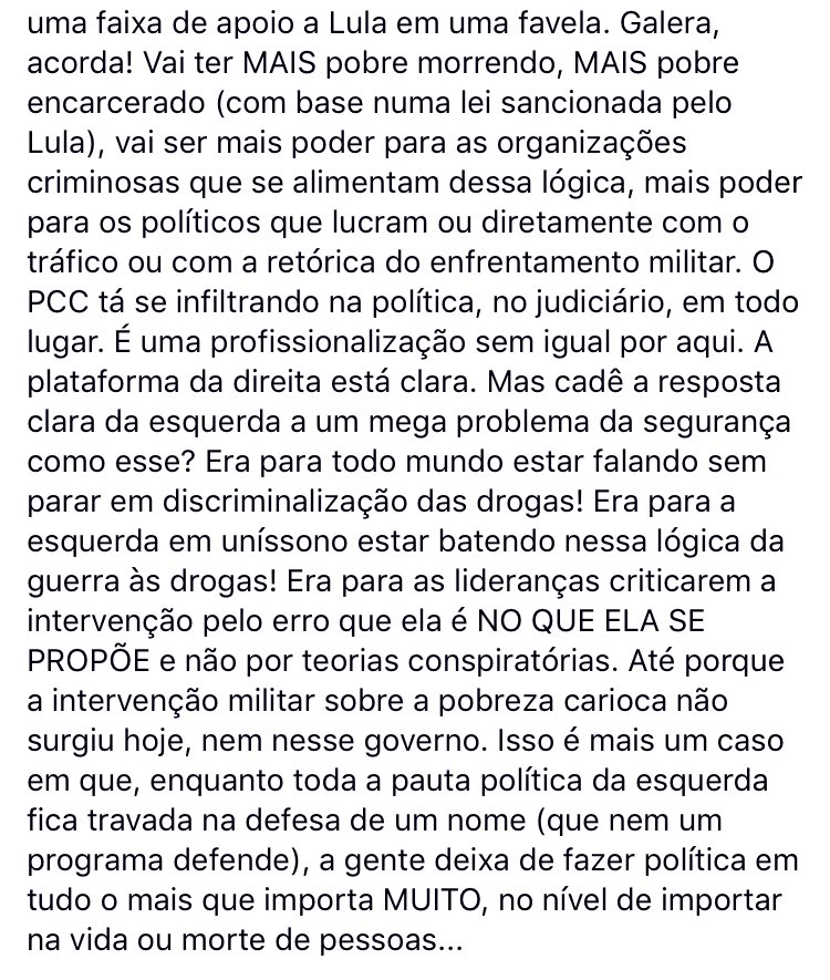 Crítica contundente de @leocisneiros à resposta da esquerda à #intervenção federal/militar: “Era para as lideranças criticarem a intervenção pelo erro que ela é NO QUE ELA SE PROPÕE e não por teorias conspiratórias” https://www.facebook.com/leonardo.cisneiros/posts/1989206807760351 …pic.twitter.com/pvJWXCEXPL
