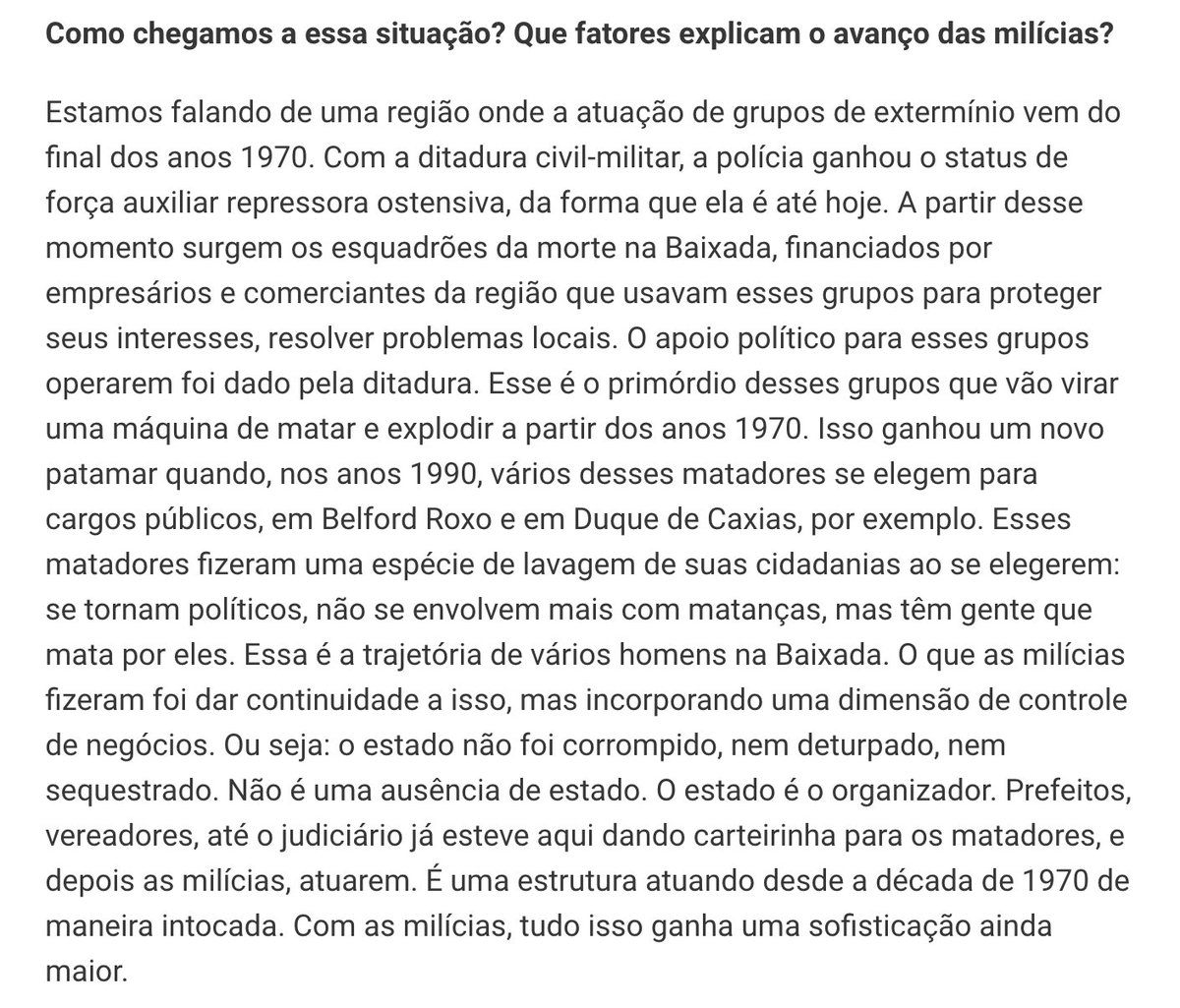 Entrevista importante com José Cláudio Souza Alves, professor da @ufrrjbr, sobre a história e atuação das milícias no Rio https://exame.abril.com.br/brasil/alves-da-ufrj-milicia-tem-poder-maior-que-o-trafico-no-rj/ …pic.twitter.com/FBjTG7ni35
