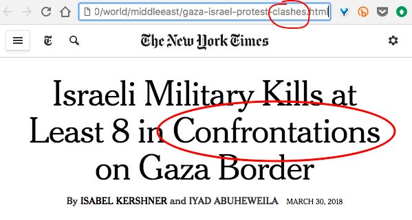 As usual, words like "confrontations" and "clashes" present a false parity of power, of "both sides" engaging in comparable violence.