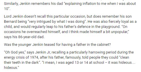 Sad to hear Lord Jenkin has died. I once interviewed father&son. This is P. Jenkin recalling how young @bernardjenkin defended him at schoolpic.twitter.com/fV3SID9IDf