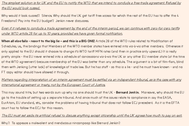 Government is allowing EU to set the terms,continuity of UK-EU trade perfectly possible by exit only EU stopping it,No to transitional deal