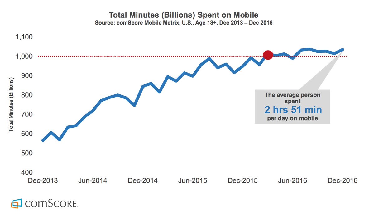 The average 18+ American is now spending 2hs 51m per day on mobile.pic.twitter.com/WqueOaioaM