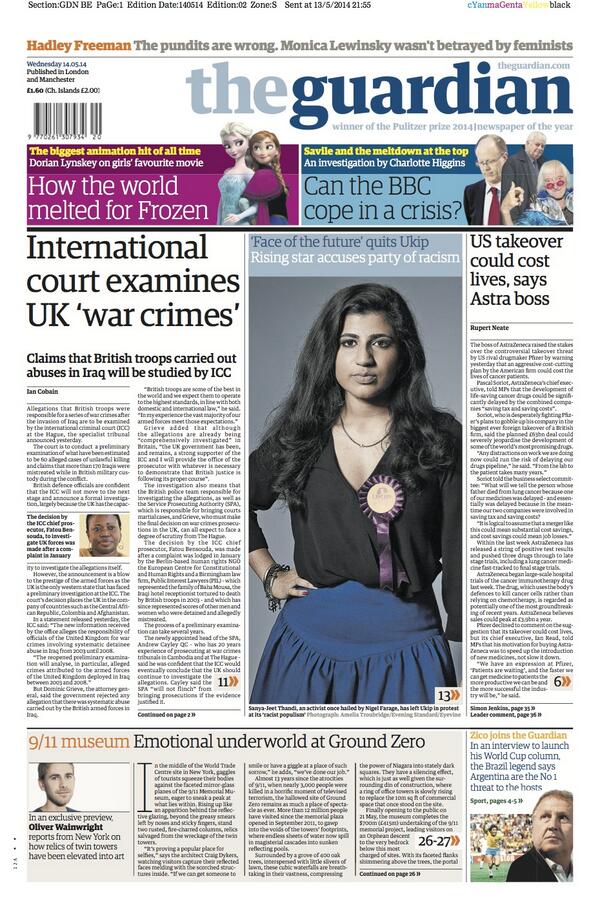 Today's front page: International court examines UK ‘war crimes’ pic.twitter.com/oeT2eEF7ns http://gu.com/p/3p6q5/tw
