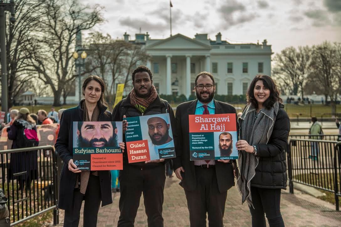 Since the day #Guantánamo opened 16 years ago, we've been fighting to close it; today we filed the first major legal challenge to the prison under Trump. Check out CCR's Aliya Hussain's remarks from the rally outside the White House: https://buff.ly/2Dls1LL (photo: Justin Norman) pic.twitter.com/nZMF7GlvqL