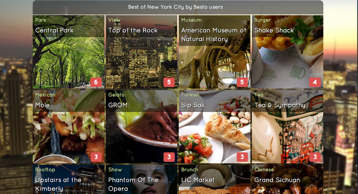 Create and share your personal guide to NYC with Besto app: https://itunes.apple.com/us/app/besto/id939117274?ls=1&mt=8 …pic.twitter.com/XN3Fk9lVo2