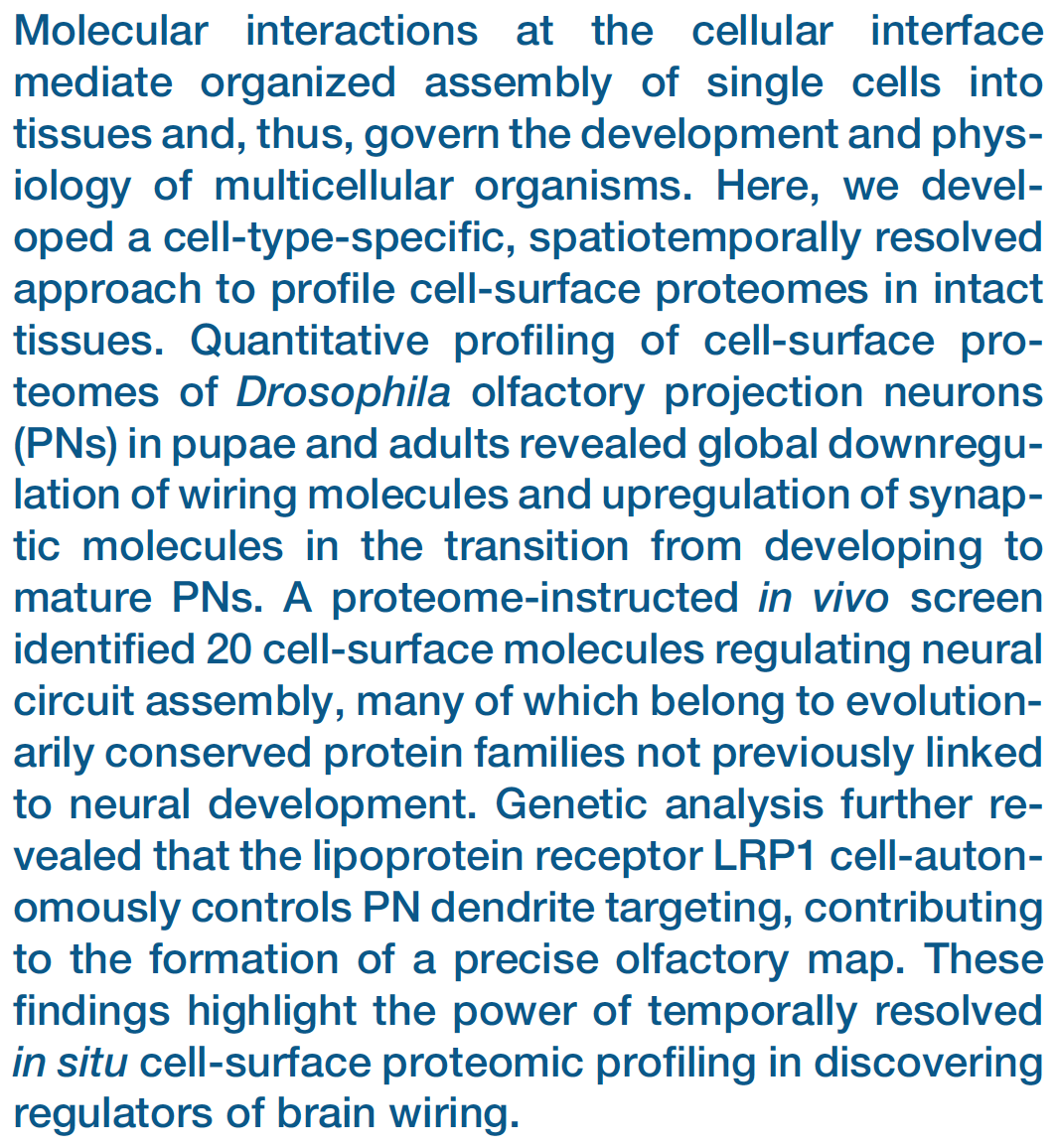 Cell-Surface Proteomic Profiling in the Fly Brain Uncovers Wiring Regulators https://www.cell.com/cell/fulltext/S0092-8674(19)31391-1#.XiGqwCh63iw.twitter … - this is just incredible work from Liqun Luo + colleagues!