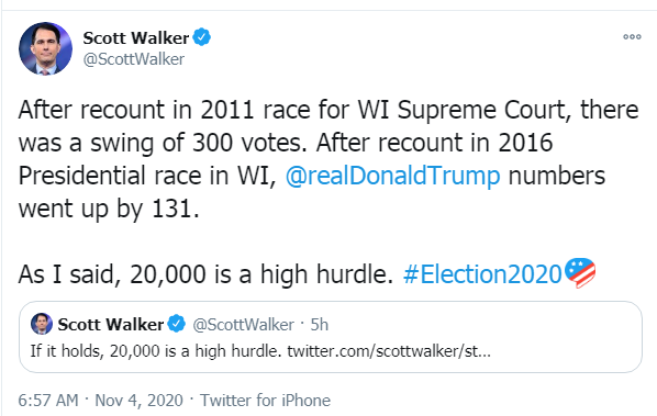 While I agree that recounts rarely, if ever swap election results, the nature of this election with all the mail-in voting means there's probably a slightly higher chance that votes have gone uncounted or miscounted
