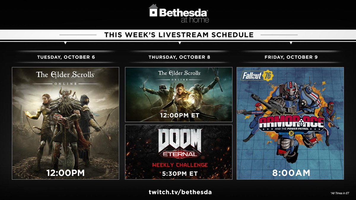 Check out the streams you can catch this week on http://twitch.tv/bethesda .