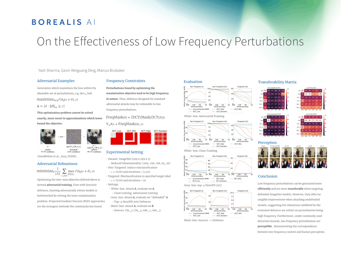 We will be presenting our study on the effectiveness of low frequency in generating adversarial perturbations